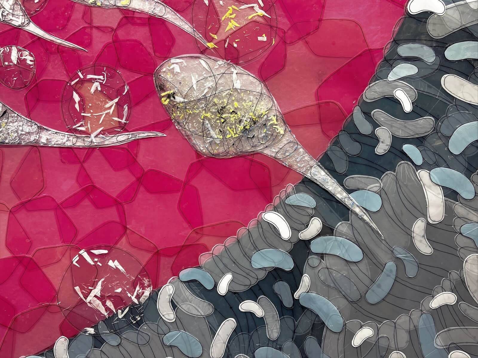 Painting from the "Non-painted" series, inspired by the bricolage technique, where new, unique compositions are created from available elements. This series offers a colourful reflection on the challenging pandemic period, while emphasizing the positive aspects both within us and in the world around us.