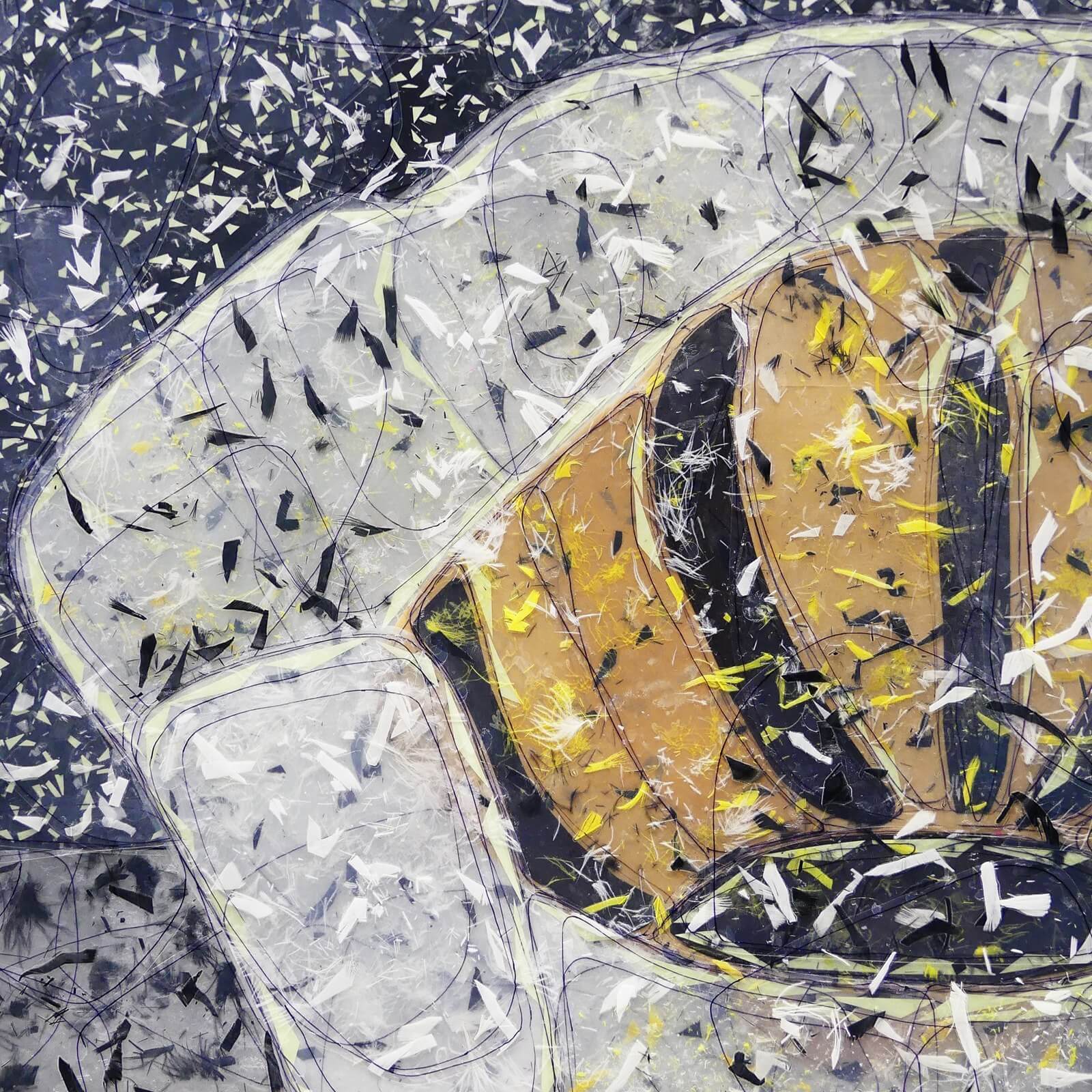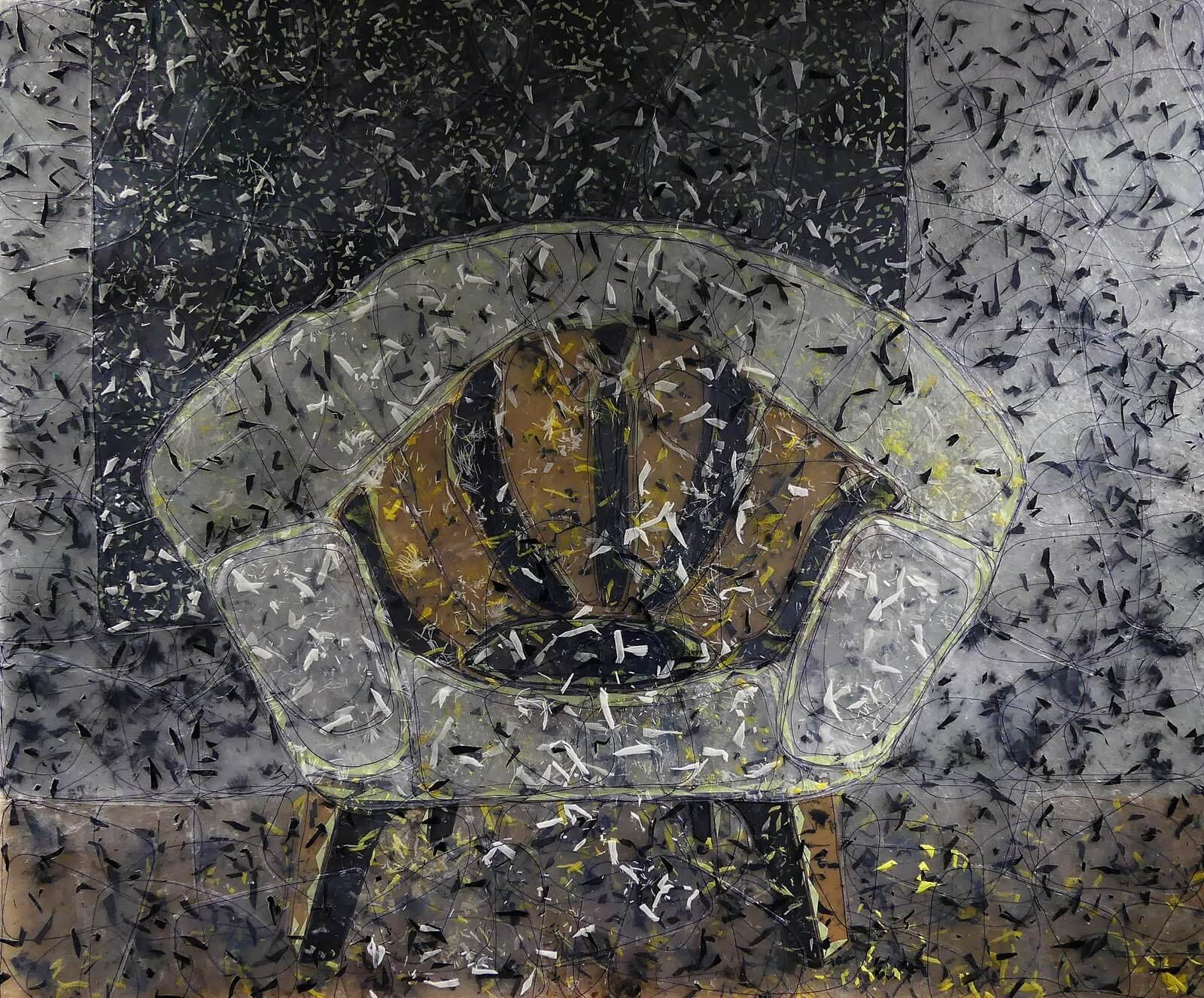 Obraz z serii "32 000 lat później", inspirowanej malowidłami sprzed 32 tysięcy lat w jaskiniach we Francji. Technika użyta w tworzeniu tej serii umożliwia oglądanie prac zarówno w świetle dziennym, jak i w nocy, co stanowi dodatkowy, unikatowy wymiar tych obrazów.