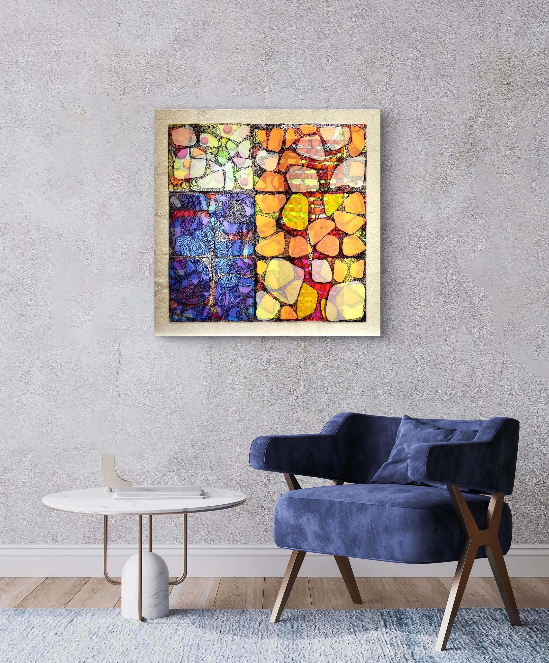 Obraz z serii „Snuwidzenia” to zaproszenie do świata snów i symboli między „Alicją w Krainie Czarów” Lewisa Carrolla, a „Czerwoną Księgą” Carla Gustava Junga. To podróż przez nieoczywiste ścieżki wyobraźni, pełne wizji i ukrytych znaczeń. Zastosowanie elementów świecących w świetle UV umożliwia oglądanie prac zarówno w świetle dziennym, jak i w nocy, co stanowi dodatkowy, unikatowy wymiar tych obrazów.