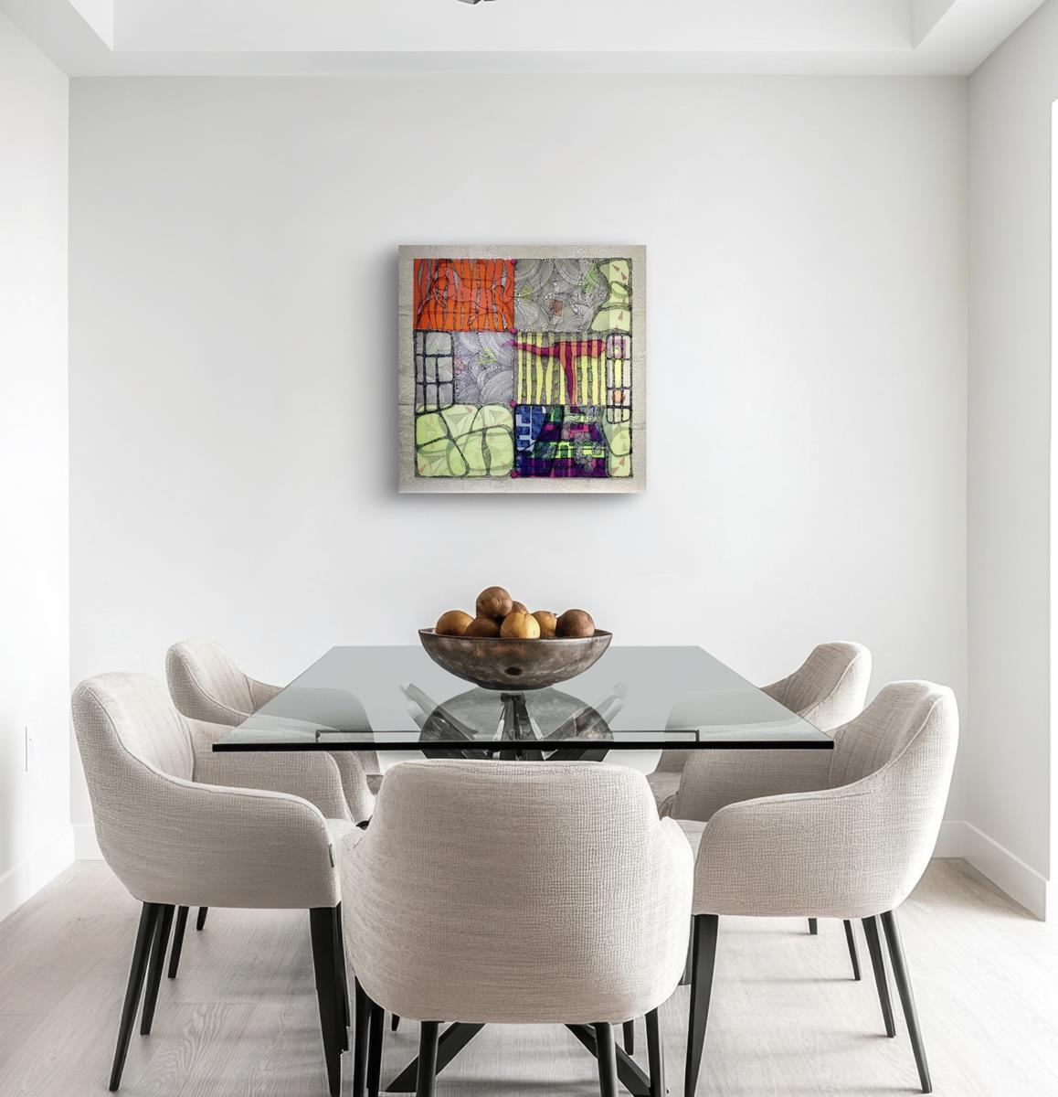 Obraz z serii „Snuwidzenia” to zaproszenie do świata snów i symboli między „Alicją w Krainie Czarów” Lewisa Carrolla, a „Czerwoną Księgą” Carla Gustava Junga. To podróż przez nieoczywiste ścieżki wyobraźni, pełne wizji i ukrytych znaczeń. Zastosowanie elementów świecących w świetle UV umożliwia oglądanie prac zarówno w świetle dziennym, jak i w nocy, co stanowi dodatkowy, unikatowy wymiar tych obrazów.