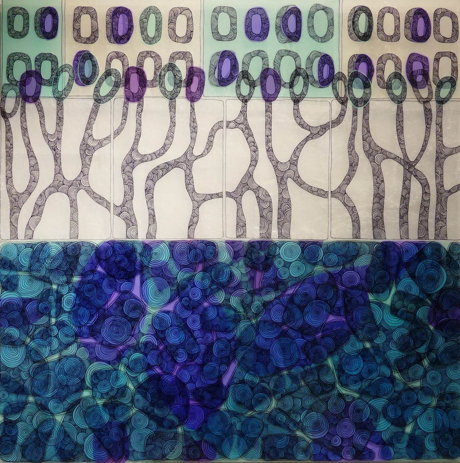 Obraz z serii "Ogrody" nawiązujący do ogrodu jako miejsca równowagi i więzi z naturą. Przestrzeń, w której sięgamy do korzeni, jednocześnie dążąc do wzrostu ku nowym możliwościom.