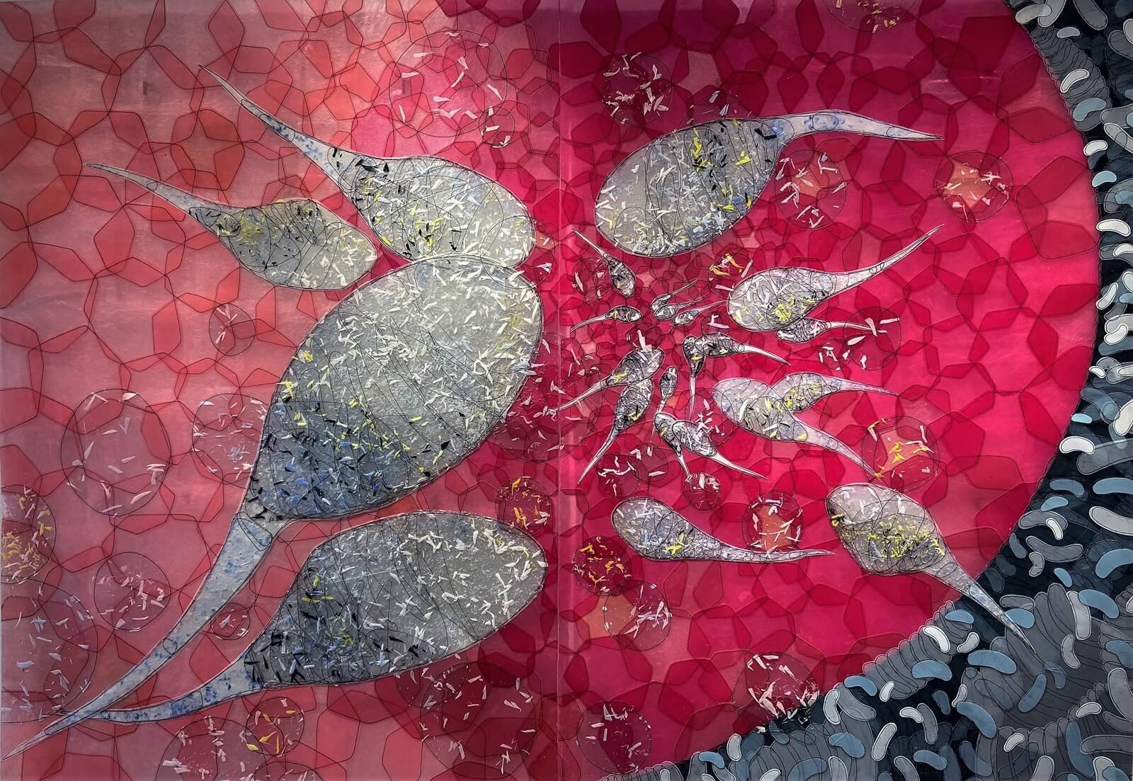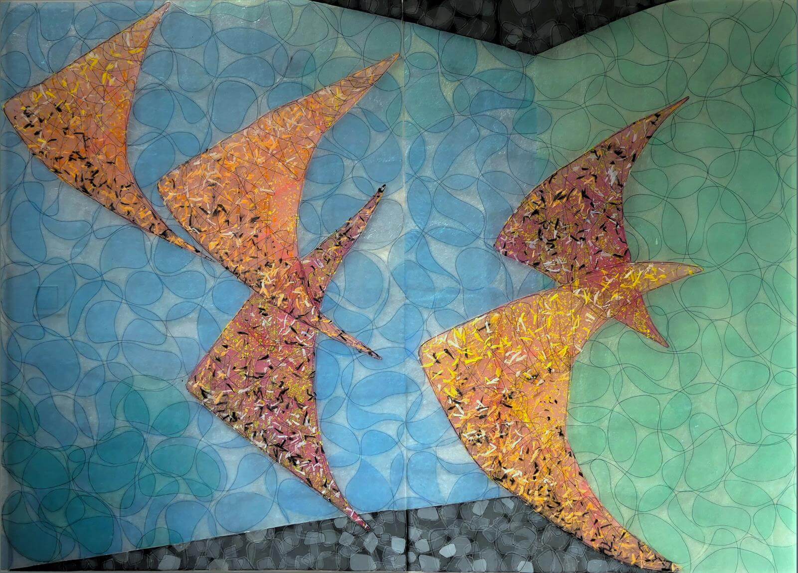 Obrazy z tej kategorii nie powstały na płótnie – to eksperymenty z fakturą, kształtem i materiałem. Tworzone ręcznie, z przetworzonych tworzyw sztucznych i innych nietypowych komponentów, przypominają bardziej trójwymiarowe instalacje niż tradycyjne obrazy.